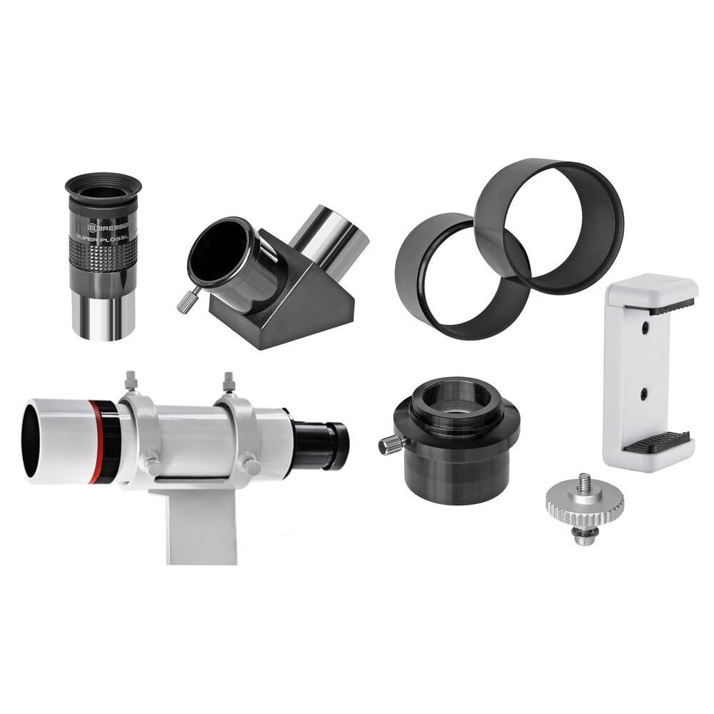 napszűrő, 26 mm Plössl szemlencse, 31,7 mm diagonális tükör, 8x50 keresőtávcső, okostelefon adapter