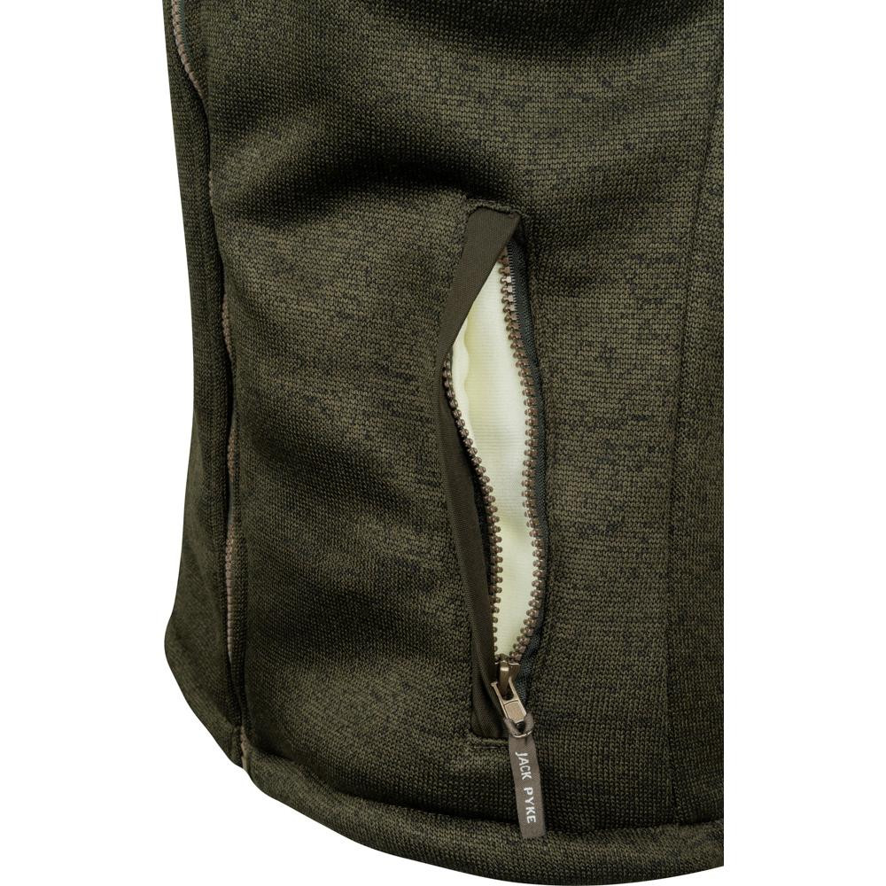 A Jack Pyke Ladies Scandinavian pulóver puha, kötött külső anyaggal és extra meleg Sherpa polár béléssel készül, amely kiváló hőszigetelést biztosít a hideg napokon. A magas gallér és a teljes hosszúságú cipzár hatékonyan tartja bent a meleget, míg a praktikus cipzáras zsebek biztonságos tárolást nyújtanak a fontos kiegészítőknek. Diszkrét Jack Pyke logóval és velúrhatású JP felkarrátéttel díszítve tökéletesen ötvözi a vidéki stílust a megbízható kültéri teljesítménnyel.