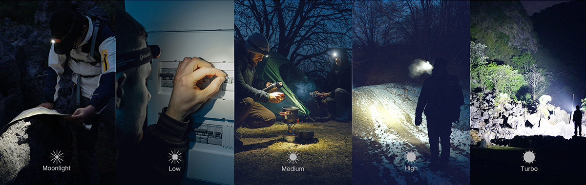 Öt fehér fényüzemmóddal akár 1 250 lumen fényerőt és 155 méteres hatótávot biztosít. A három piros fényfokozat segíti az éjszakai látást, illetve vészhelyzetben figyelemfelkeltő jelzésként szolgálhat.