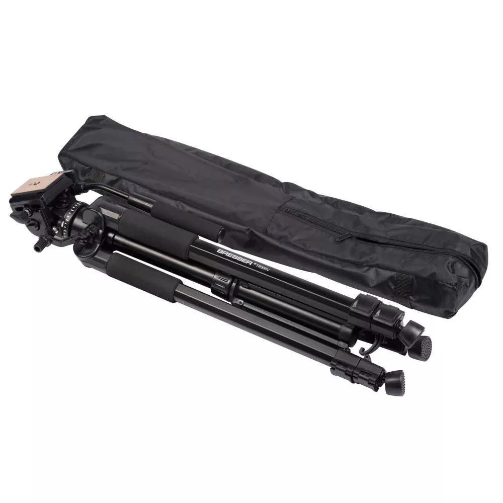 Thanks to its low weight of just 2 kg and compact transport length of approx. 70 cm, the Bresser TR-688V is easy to take along on hikes, outdoor shoots, or trekking tours. The sturdy handle provides additional carrying comfort, and the hook under the center column allows you to hang a counterweight or camera bag for added stability.