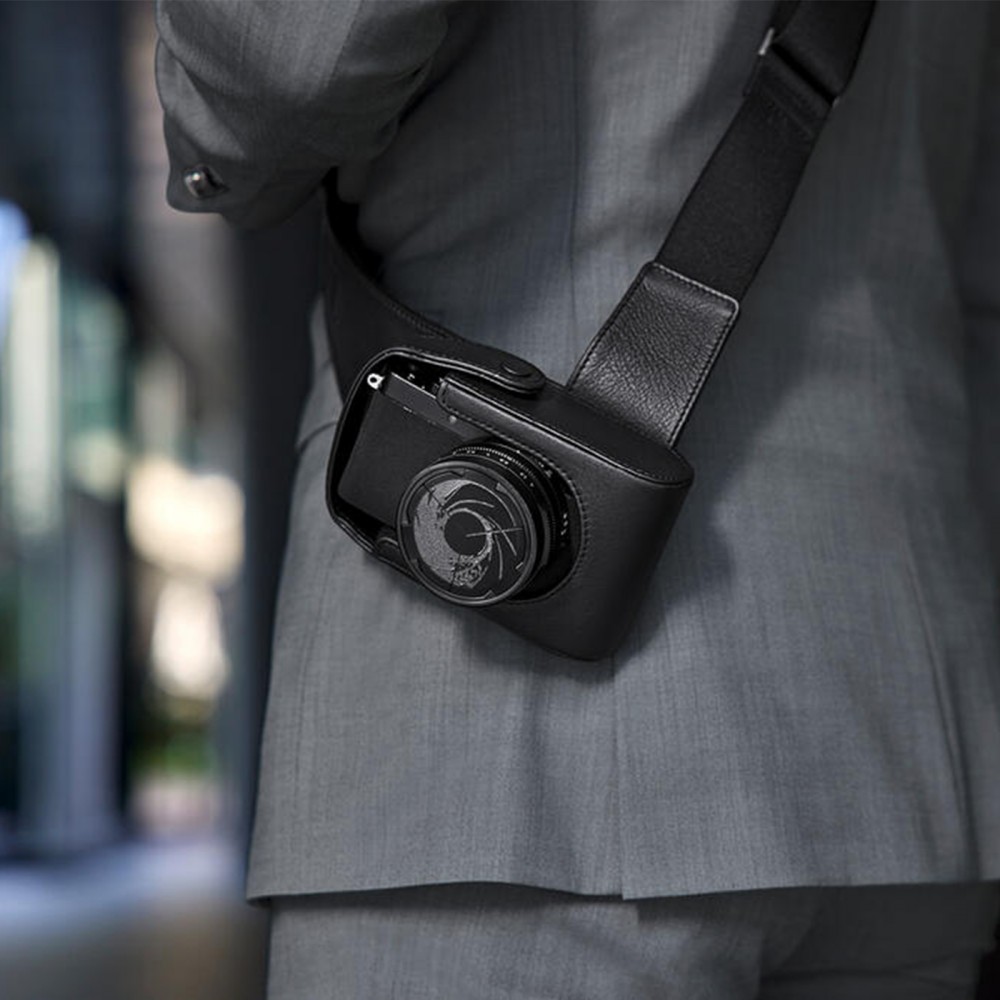 Along with its elegant camera trim – made of a high-performance material with a subtle rhombus pattern – and the 007 engraving on the top plate, the 007 Edition is also distinguished by a shoulder holster. The leather holster allows the camera to be carried securely and with instant access, whilst being easily accessible at all times. The handgrip (which matches the camera trim) and wrist strap ensure secure handling in fast-paced scenarios, while the lens cap with the classic ‘gun barrel’ design opens automatically as soon as the camera is switched on.