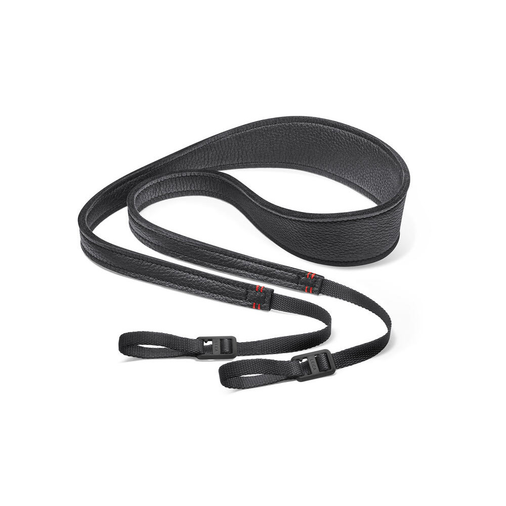 This carrying strap for the Leica S- and SL-System combines durable elk leather with textile for a perfect blend of functionality and style. The resilient elk leather guarantees comfortable wear, while the strap ends feature a new attachment, allowing for quick and easy mounting and dismounting. Moreover, the new attachment is easily adjustable in length and can be removed residue-free, leaving no components behind on the camera.