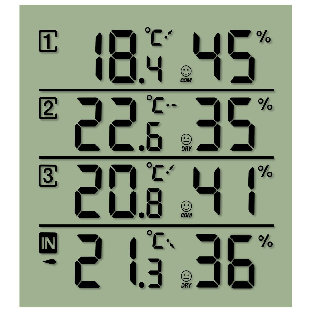 The NATIONAL GEOGRAPHIC thermo-hygrometer offers the possibility to measure temperature and air humidity in or around your house at 4 different locations, with simple monitoring at one location: Is my cellar room too moist and threatened by mould? Is the children's bedroom temperature all well? Is it too hot on the terrace? There are many more options open.