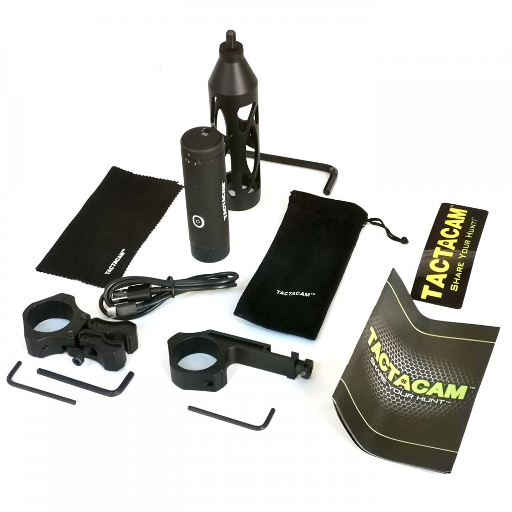 Tactacam Solo Wifi hunter camera, battery, charging cable with mains plug, 32 mm stabilizer, unique gun mount, rail mount under riflescope