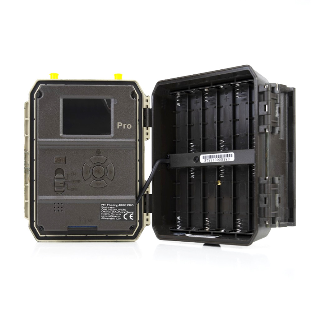 With its rugged construction and IP66 weatherproof design, the game camera can withstand any weather conditions. The camera can be operated with 12 AA batteries/batteries or with a 12V external battery + DC power cable (optional accessories). The external battery provides a much longer operating time and works great in cold conditions. The camera can also be used with a solar battery (optional accessory).