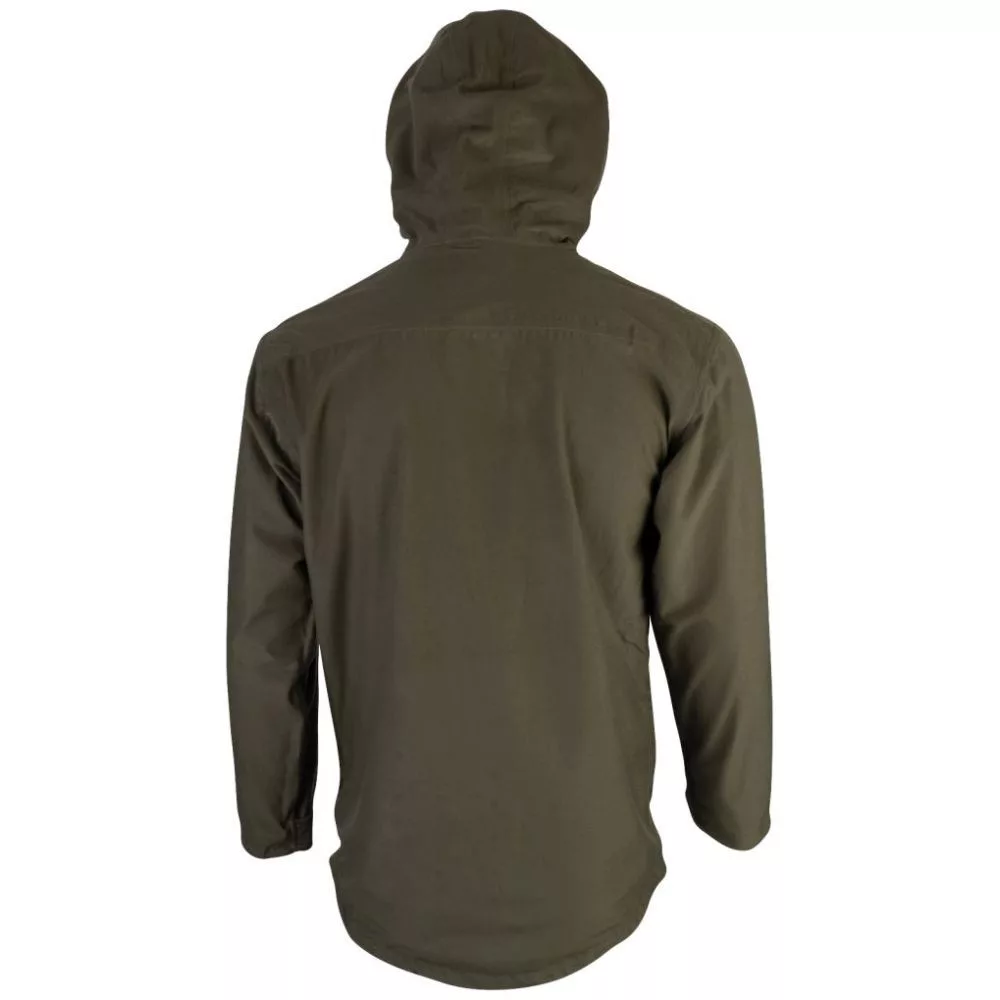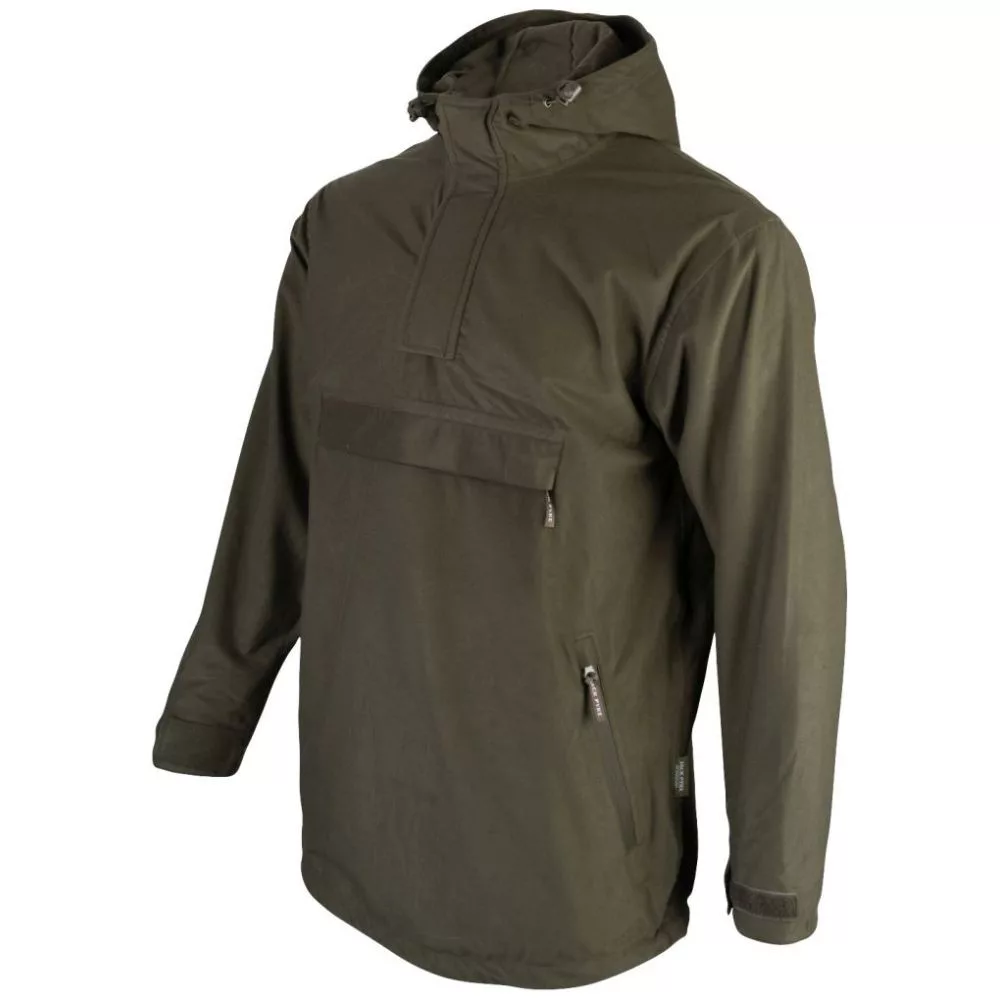 The Jack Pyke Galbraith Smock 100% polyester brushed tricot with laminated membrane, with an adjustable hood, adjustable cuff bands and a drawstring waist. Using brushed tricot material also results in an easily foldable and lightweight garment which can save some in your backpack. The large front pocket and two angled lower pockets with waterproofed zips will give you plenty of space.