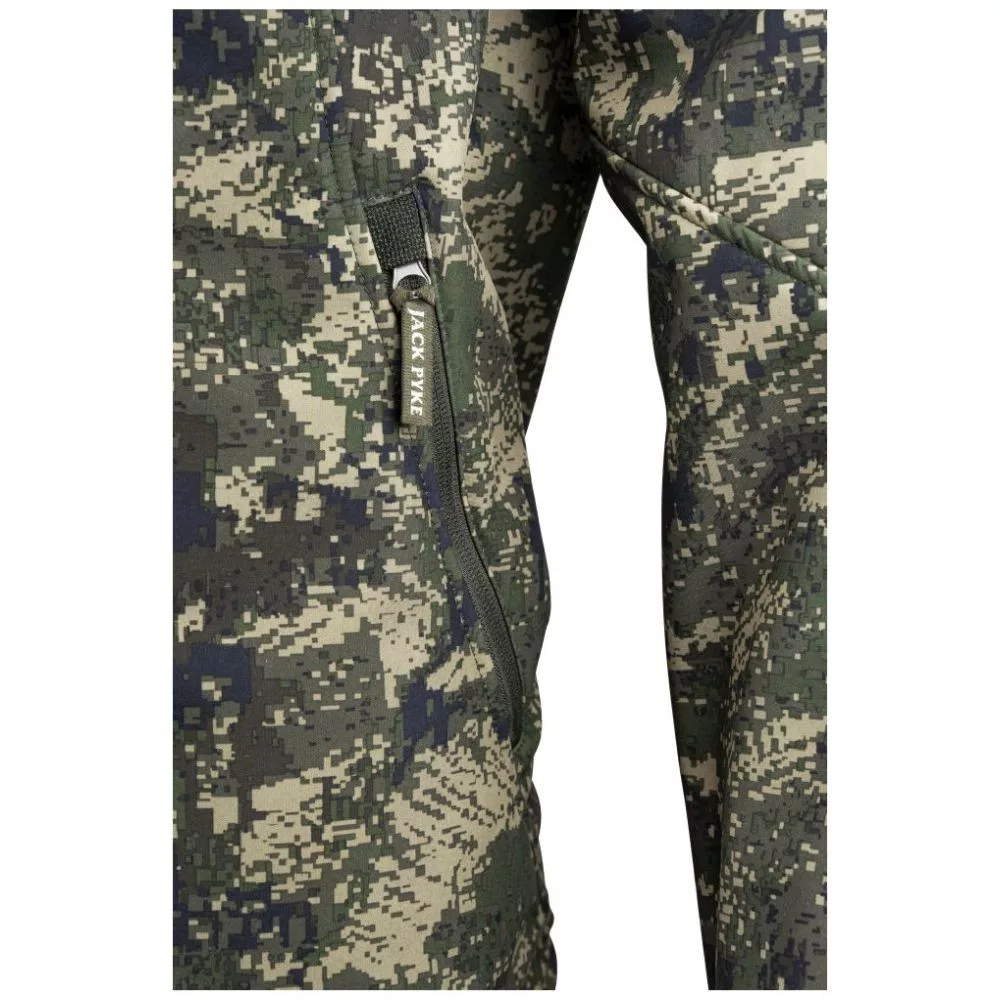 Jack Pyke Softshell Jacket Digicam is the perfect jacket for heading out into the woods and keeping a low profile. This versatile men's hunting jacket has a specially designed digital camouflage enabling you to blend in perfectly with your wooded surroundings. Constructed from polyester and spandex softshell for a supremely flexible jacket to allow exceptional freedom of movement, this lightweight men's camo shooting jacket is highly breathable and water resistant to keep you dry in the occasional shower, and wind resistant to keep the cold winds from your core.