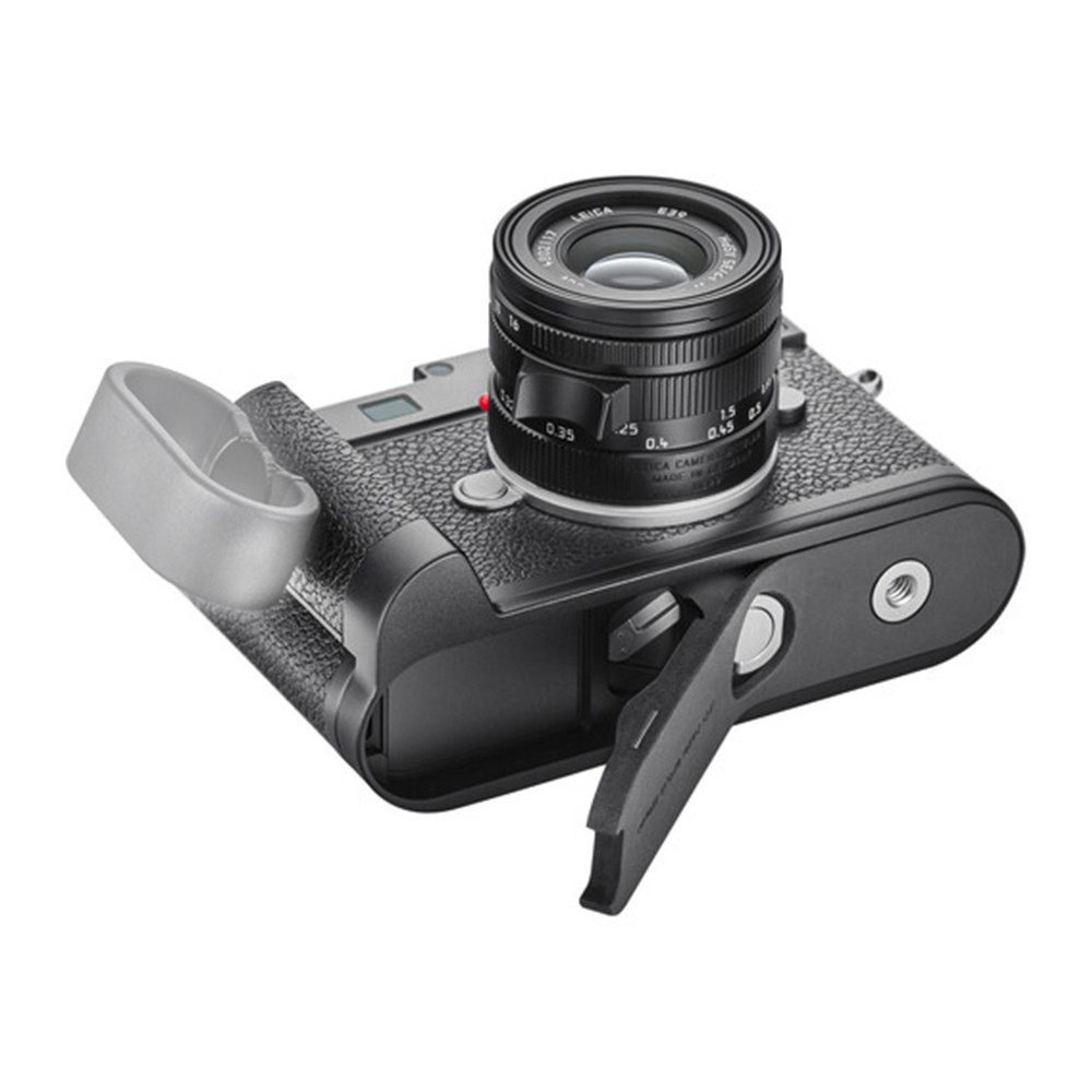 Dedicated to the Leica M11 camera, this Handgrip attaches to the camera via its tripod mount and the large right-hand grip improves stability and comfort while shooting. The grip's design has an integrated Arca-style dovetail for direct attachment to tripod heads without the need for a quick release plate and the grip also maintains unrestricted access to the battery and memory card slot and USB type-C port while attached.