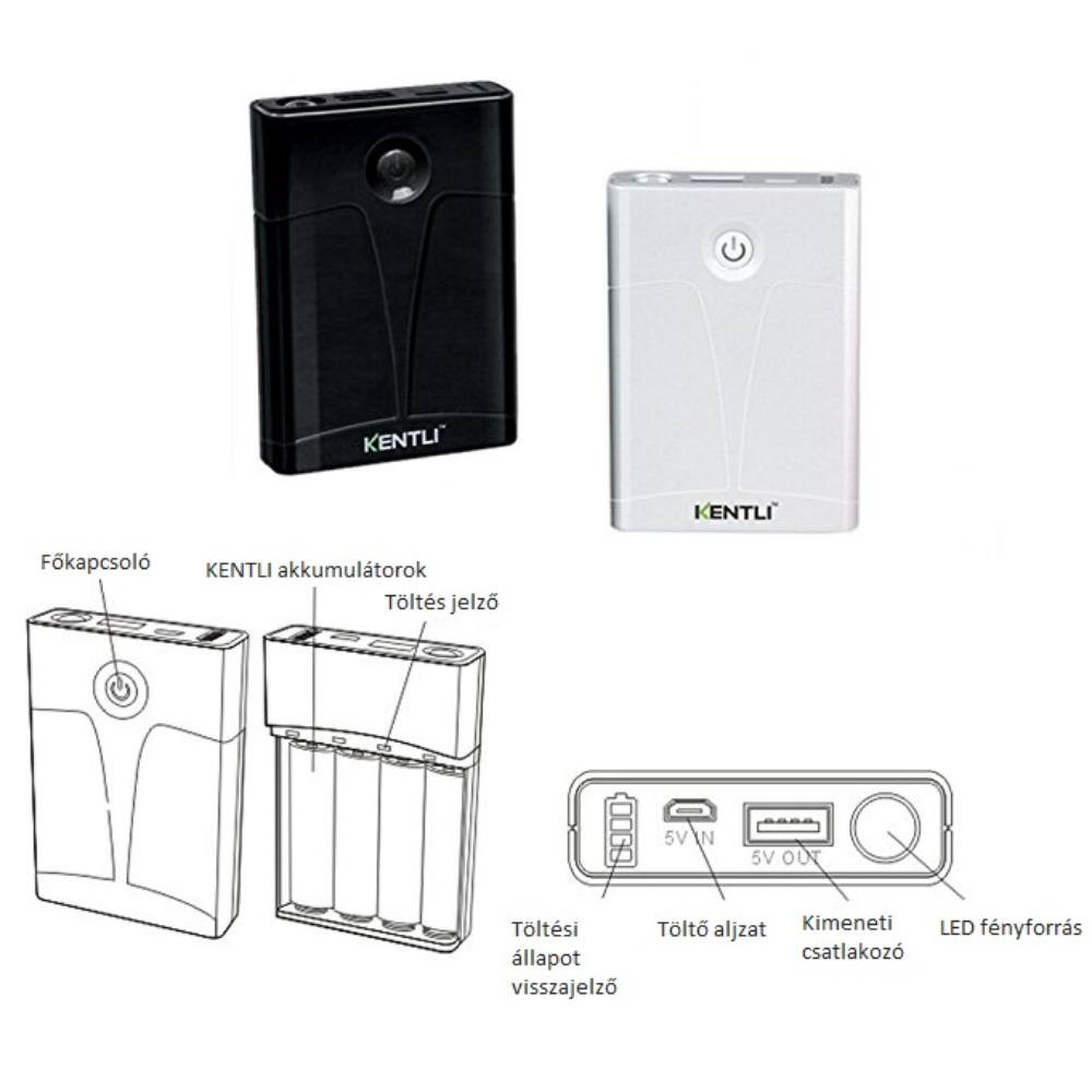 Kentli ET-007 AA akku töltő PowerBank funkcióval + PH5 3000 mWh Lítium-ion akkumulátor - 4db