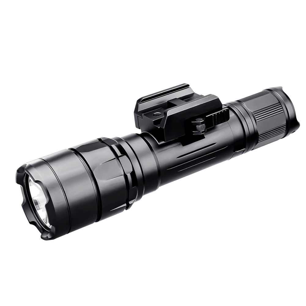R8 adopts tail tactical button switch with remote switch(suitable for standard Pctiny rail), It can be installed and disassembled quickly, with high reliability and operability, Max up to 1700 lumens, with intelligent temperature control and low-voltage warning, built-in rechargeable lithium ion battery, IP67 dust-proof and waterproof and pass 1 meter anti-drop, it can use safely in the outdoor environment.