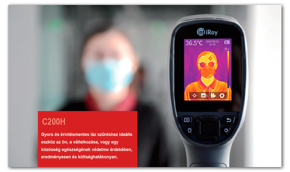 Az új InfiRay C200H az egyik legkompaktabb és legjobb ár-értékarányú mobil, egészségügyi testhőmérséklet mérő hőkamera, mely szűk hőmérséklet tartományban mér nagy pontossággal. Egy végtelenül egyszerűen használható professzionális termék, mely egyszerűbbé és lényegesen biztonságosabbá teszi a munkába való visszatérést, vagy a kisebb forgalmú közösségi terek ellenőrzését. Az InfiRay-től megszokott piacvezető minőségben és innovációkkal - most igazán elérhető áron.