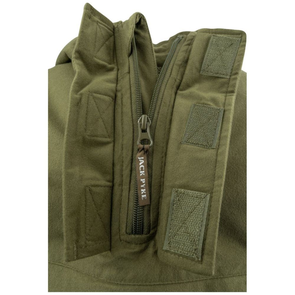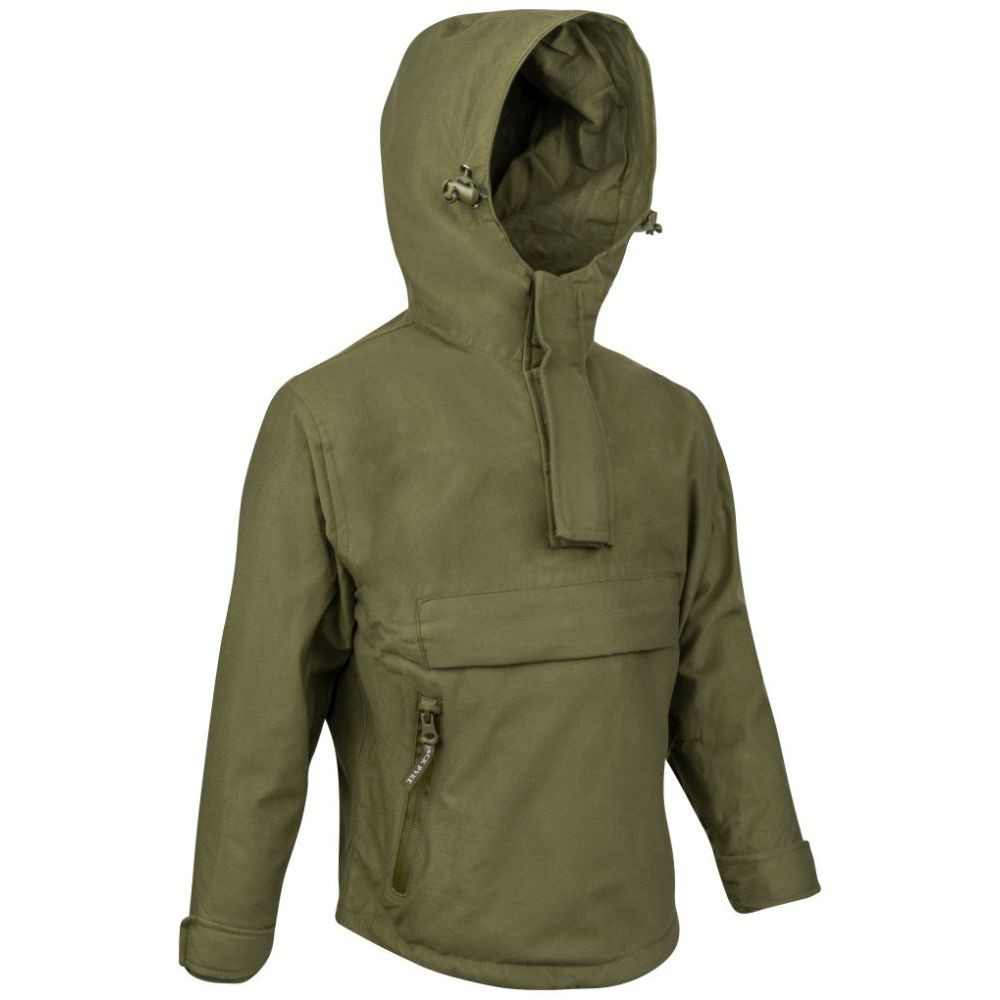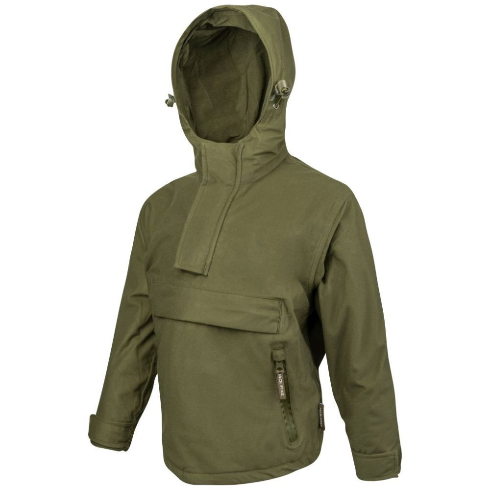 Jack Pyke Galbraith anorák állítható kapucnival, állítható mandzsettapánttal és húzózsinóros derékkal. A szálazott trikóanyag használata egy könnyen összehajtható és könnyű ruhadarabot is eredményez, amely sok megtakarítást jelent egy hátizsákban. A nagy elülső zseb és a két ferde alsó zseb vízálló cipzárral rengeteg helyet biztosít. Praktikus és komfortos.