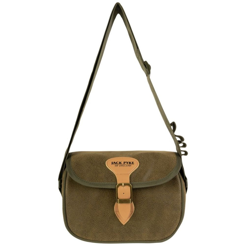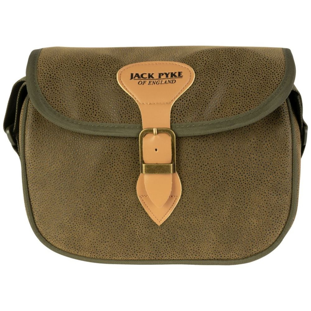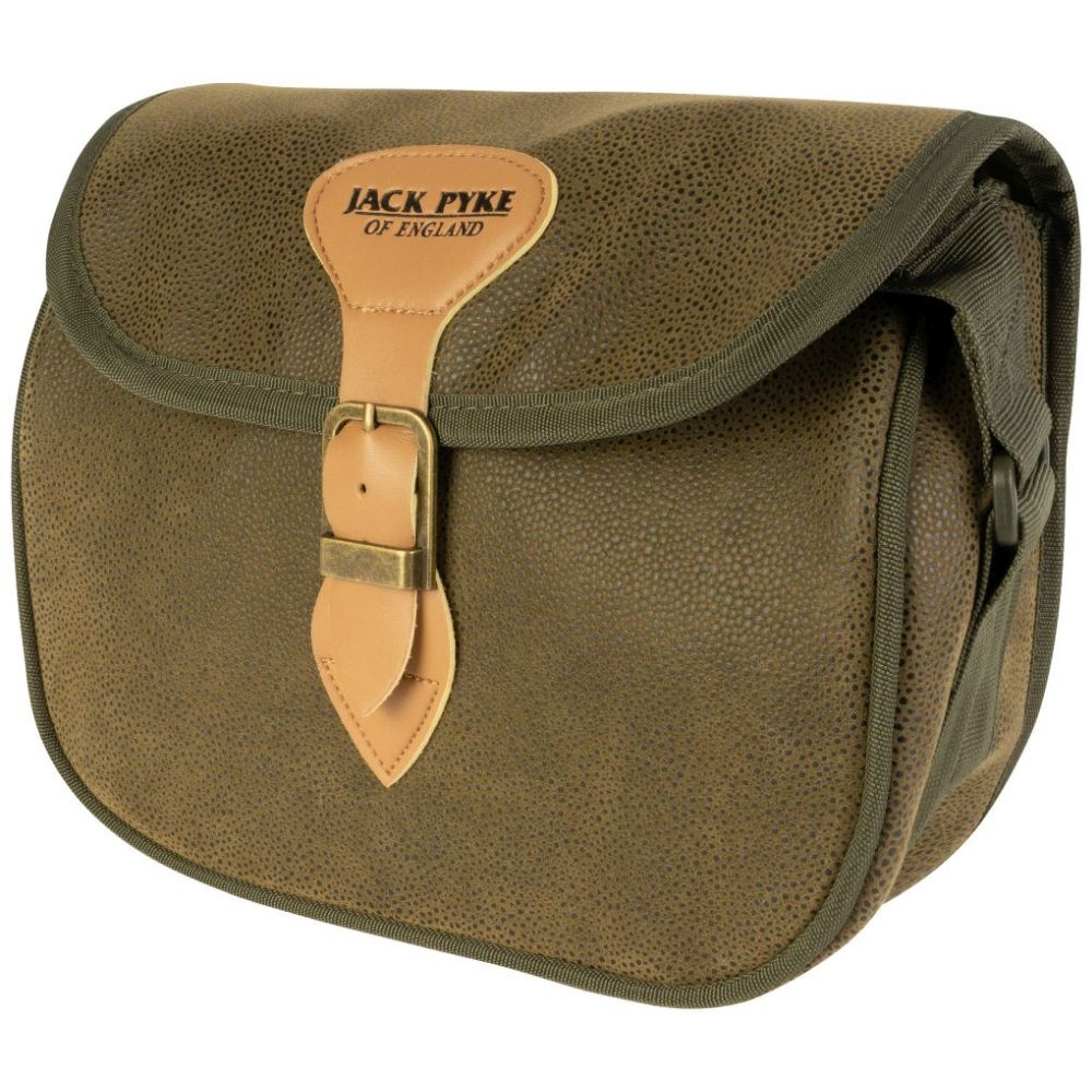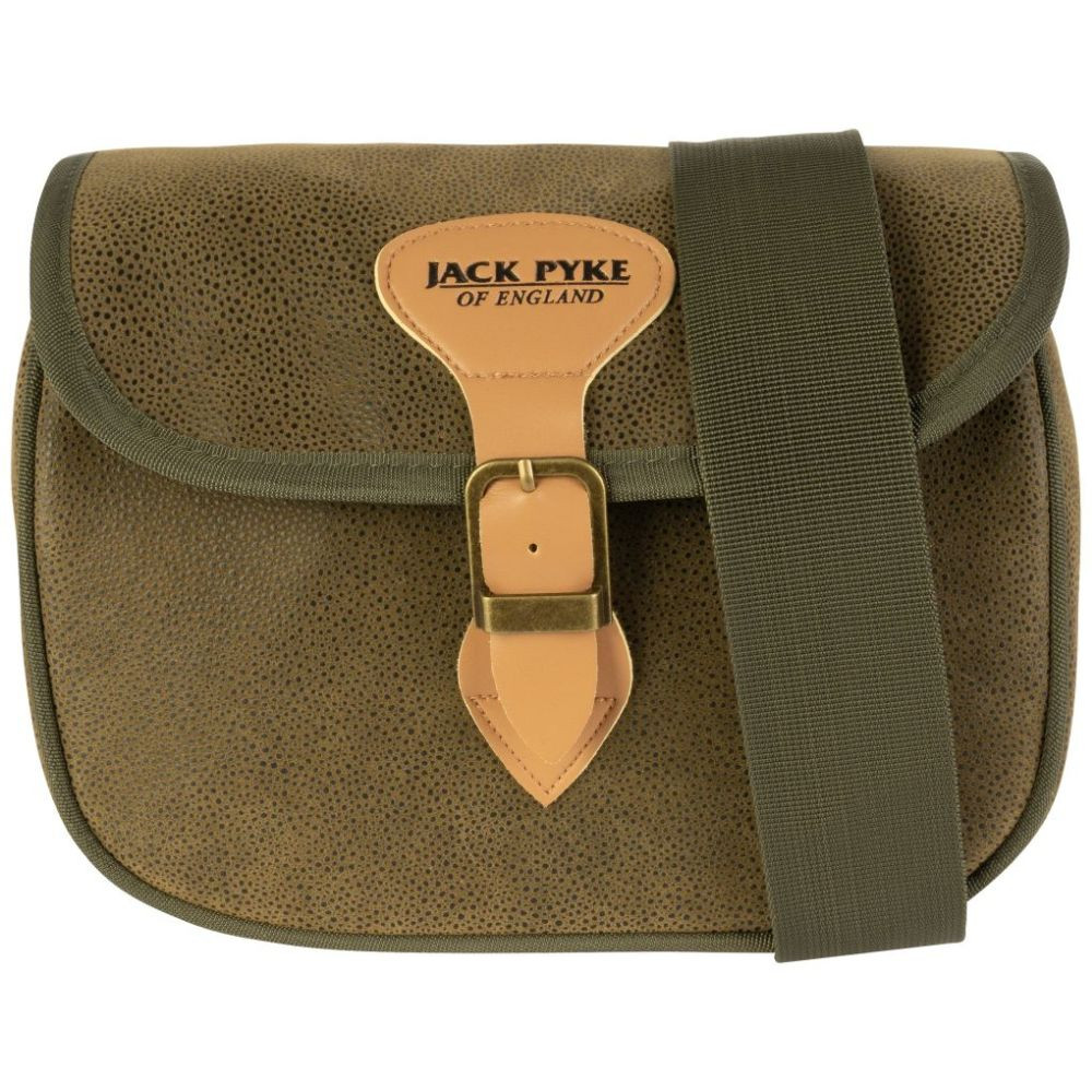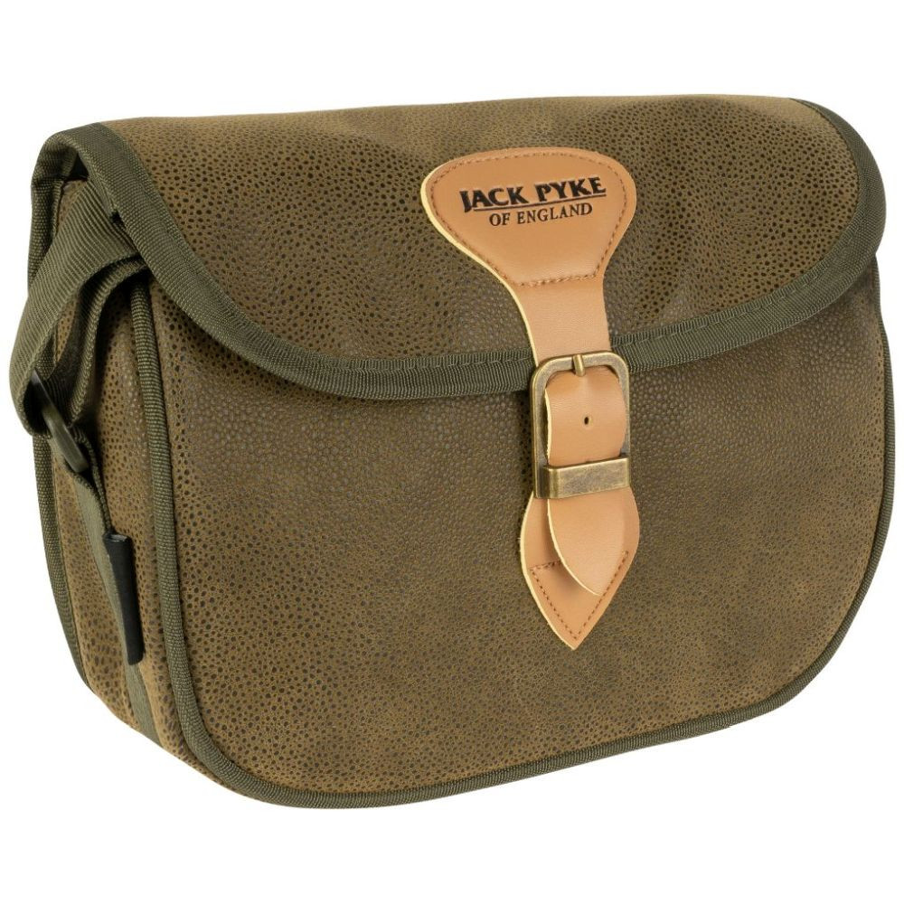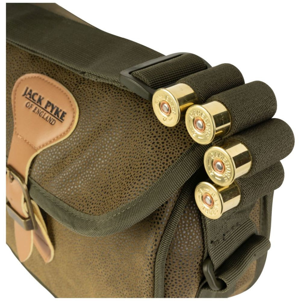 A Duotex Jack Pyke Speed Loader lőszertáska körülbelül 100 lőszert képes befogadni. A gyorstöltő stílusú nyílás gyors hozzáférést biztosít a patronokhoz. A Duotex anyag hagyományos, country stílusú megjelenést kölcsönöz a táskának, és ezzel a felépítéssel biztos lehetsz benne, hogy a patronok védve vannak az időjárás viszontagságaitól. A hagyományos műbőr és csatos rögzítés előkelő megjelenést kölcsönöz a táskának. Az egész napos kényelem érdekében a vállpánt teljesen állítható, és magán a pánton van egy sor tartó is négy lőszernek.
