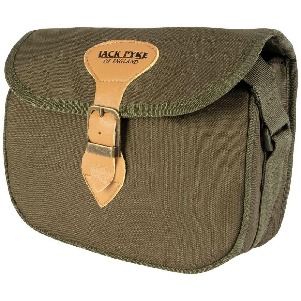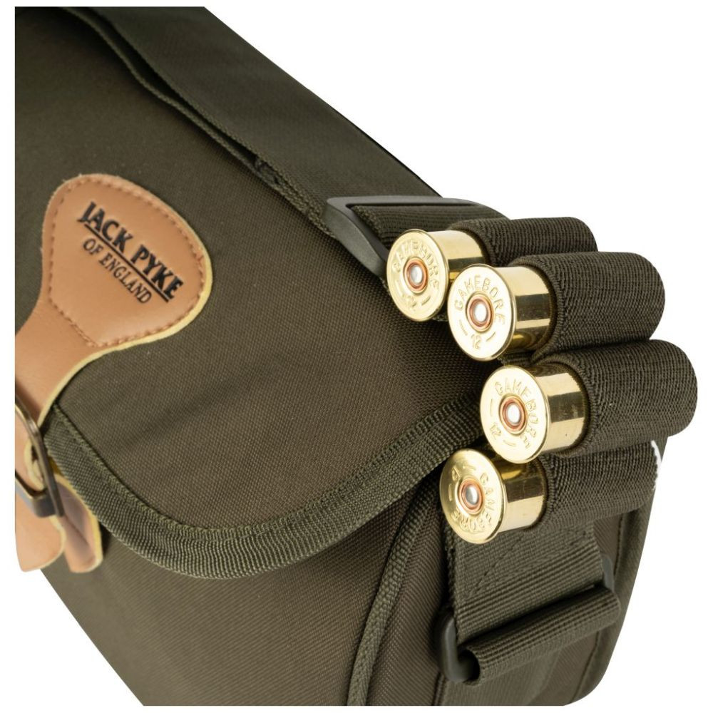A Duotex Jack Pyke Speed ​​Loader lőszertáska körülbelül 100 lőszert képes befogadni. A gyorstöltő stílusú nyílás gyors hozzáférést biztosít a patronokhoz. A Duotex anyag hagyományos, country stílusú megjelenést kölcsönöz a táskának, és ezzel a felépítéssel biztos lehetsz benne, hogy a patronok védve vannak az időjárás viszontagságaitól. A hagyományos műbőr és csatos rögzítés előkelő megjelenést kölcsönöz a táskának. Az egész napos kényelem érdekében a vállpánt teljesen állítható, és magán a pánton van egy sor tartó is négy lőszernek.