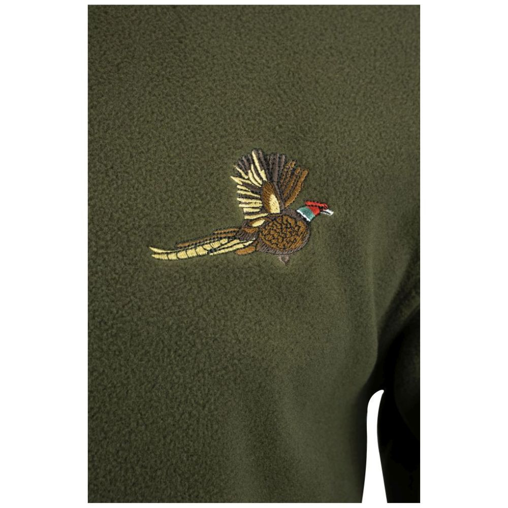 A Jack Pyke fácán motívumú polár felső 250 g-os poliészter gyapjúból készült, így ez a pulóver külső rétegként viselhető a melegebb hónapokban, vagy alaprétegként az őszi és téli időszakokban. A meghosszabbított derékrész és a rugalmas mandzsetták további védelmet nyújtanak az időjárás viszontagságaival szemben. Az előlapon hímzett fácán motívum adja a klasszikus mezei sportok megjelenítését.