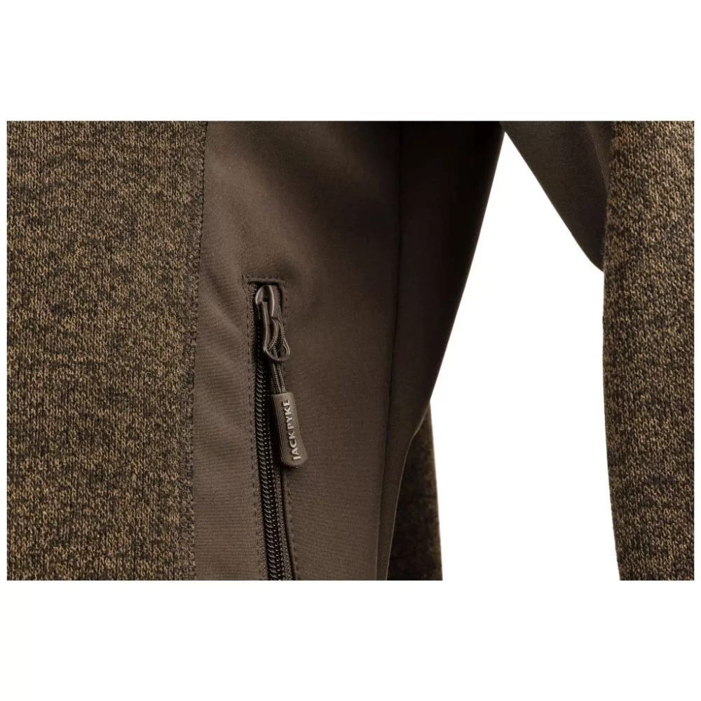 A Jack Pyke Weardale kötött kabát 100% poliészter kötött polárból készült. A softshell kontrasztpanelek és a finoman kötött polár kombinációja elegáns megjelenést és kényelmes érzést kölcsönöz ennek a kabátnak. Teljes hosszúságú elülső cipzárral, két alsó cipzáras zsebbel és egy cipzáros mellzsebbel rendelkezik.