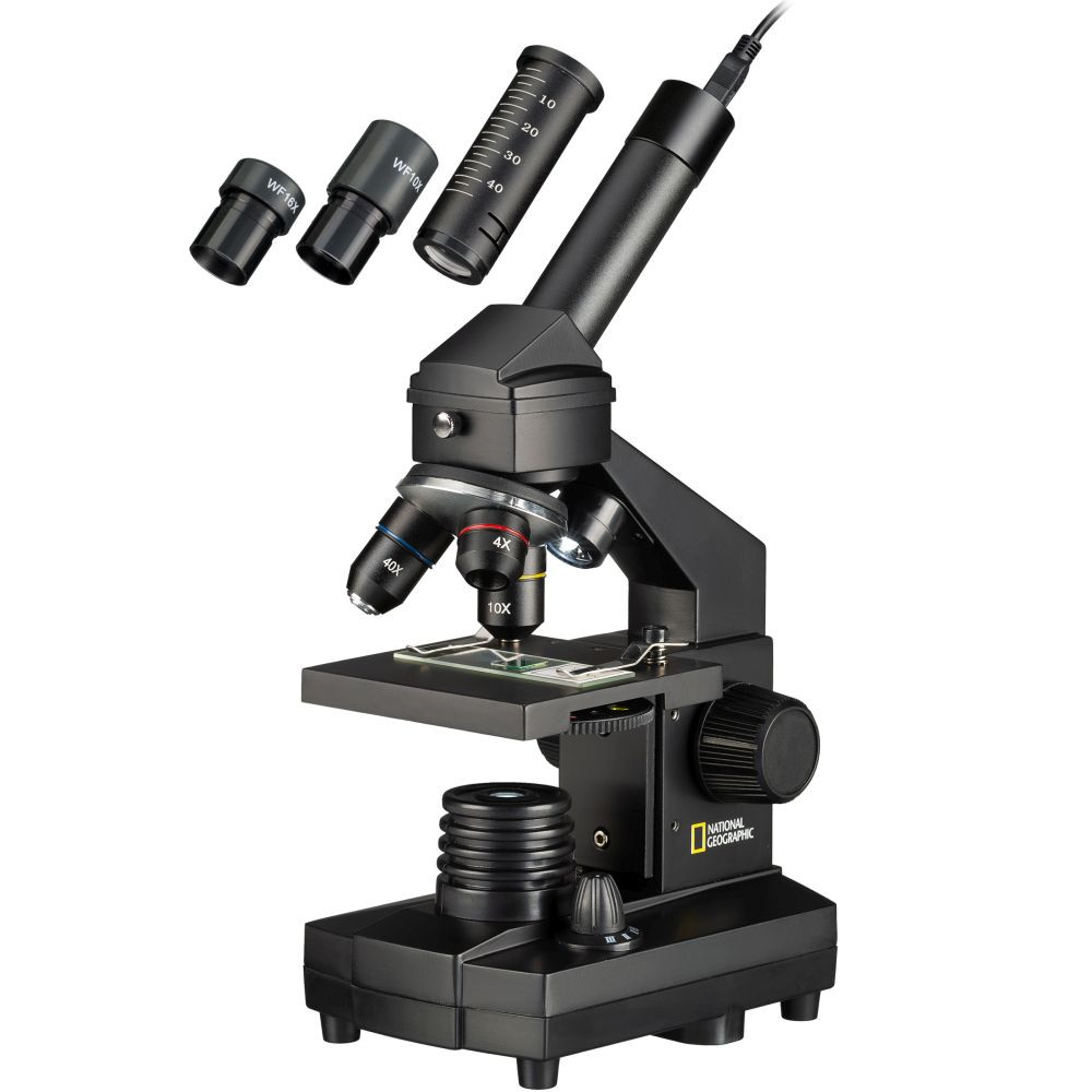 A NATIONAL GEOGRAPHIC 40x-1024x mikroszkóp kiegészítők széles választékát kínálja a kezdőknek: szállítótáska, elektronikus okulár mely számítógéphez csatlakoztatható, valamint tárgylemezek és minták nagy választéka; csak csomagolja ki és nézzen bele a mikroszkópba!