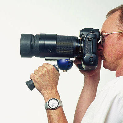 A NOVOFLEX BasicBall félgömbbe helyezhető markolat segítségével gépünket igen biztosan tarthatjuk kezünkben. Két állvány lábbal együtt kisméretű melltámasz alakítható ki.