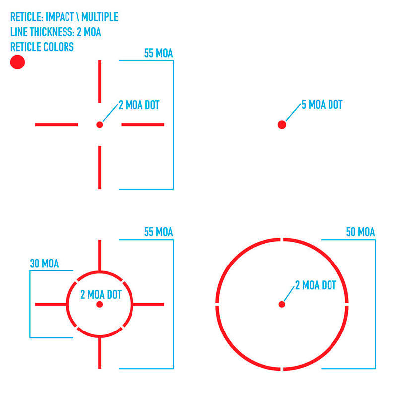 Egy külső védőréteg óvja a lövésálló optikát és komponenseit az igazán kemény használat során a sérülésektől. Állítócsavarok segítségével gyors magasság és oldalkorrekció állításra is van lehetőség. Egy darab CR2032-es elemmel működik, ami maximálisan 250 óra üzemidőt tesz lehetővé. Az ergonomikusan tervezett gombok segítségével különösen gyorsan, 5 fokozatban állítható a 2 MOA méretű célzópont fényerőssége.