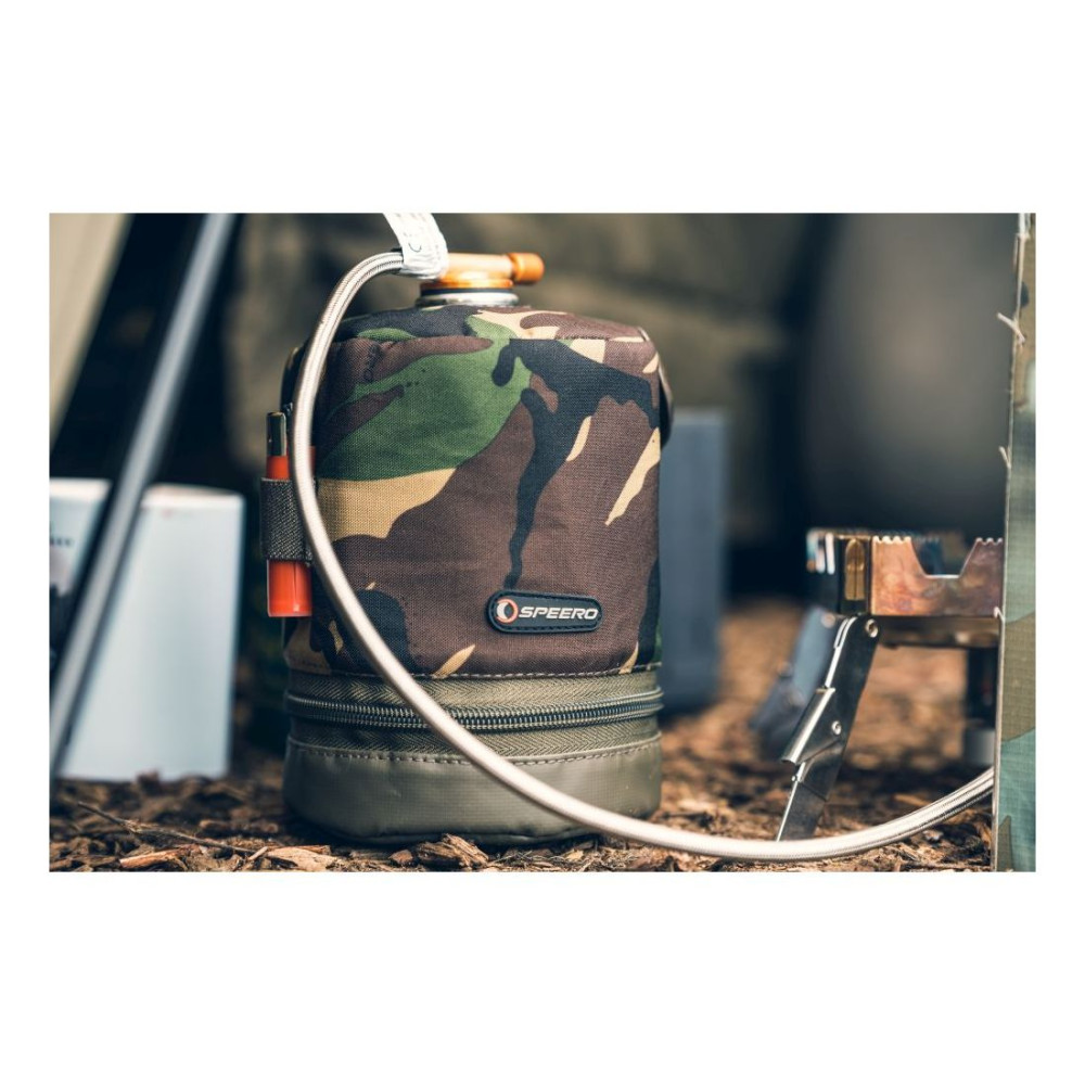 Elasztikus bujtatóval az öngyújtó számára. Szigetelt kivitel a hidegebb hónapokban való használathoz. 450 g-os gázpalackkal kompatibilis.